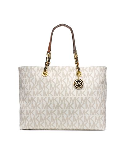 michael kors cynthia logo large tote in vanilla white lyst