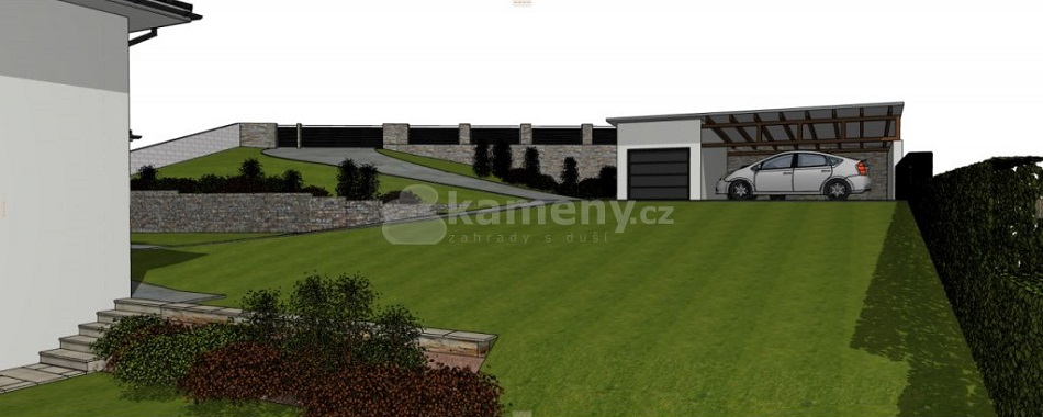 3d graficka vizualizace rodinneho domu a zahrady kameny cz s r o
