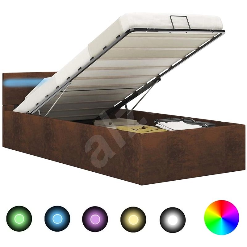 ram postele s led a uloznym prostorem hnedy textil 100x200 cm postel alza cz